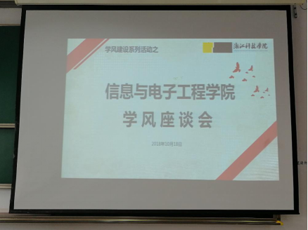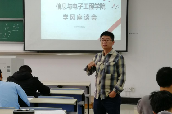 为进一步加强学风建设,信息学院于2018年10月18日在习得园C2-647召开信息与电子工程学院学风座谈会,会议主要围绕降级生问题开展。院党委副书记姜国泉老师、学工办主任潘中祥老师、辅导员吕兵兵老师、学生代表参加会议。