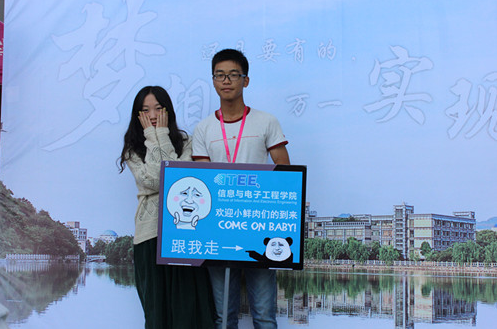 本次迎新有一大亮点:结合专业特长,帮助家长新生。由信息学院出资购买拍立得和大量相纸,在“梦想还是要有的,万一实现了呢”的大型幕布下,让新生与家人合影留念,因拍立得照片即拍即洗,家长和新生马上能够拿到相片,节省时间。同时,相片采取一式两份制,一份将贴在大型幕布上,拼成属于信息的“IT”字样,让新生首次感受信息大家庭的温暖与团结,提前体会信息学院的集体精神和荣誉感,另一份将送给新生和家长,让首次体会大学生活的新生和家长们可以得到进入科院的第一张照片,还可以借由照片舒缓“相思情”。