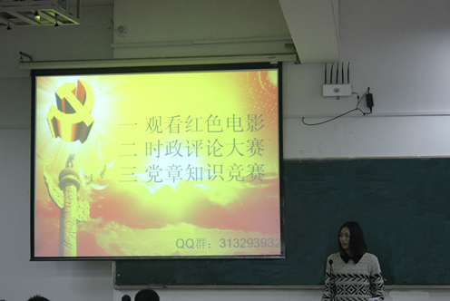 2014年11月16日晚6点,党章学习小组第一次活动–观看红色电影在A2-118教室准时举行。入党积极分子安静,专注地观看了电影《集结号》,并深深为片中无畏牺牲的战士所感动。