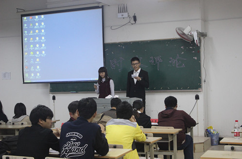 2014年11月23日晚6时,由信息中研会举办的党章学习小组第二次活动——时政评论大赛在A2-118正式拉开帷幕。各位班级代表在讲台上畅谈时事,针砭时弊,书生意气,挥斥方遒。