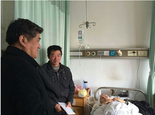 恰同学少年,风华正茂。虽然现实以无情的姿态站在眼前堪比寒冬,但是好在有情的人们能以温暖拥抱岁月。信息学院院长岑岗、学院党总支副书记姜国泉,以及张艺在校期间的班主任、辅导员代表师生看望张艺及他的家人,亲手将爱心募捐所得交到了张艺父母的手上,传达了全校默默支持他的师生的美好祝愿,希望张艺坚强、乐观,直面生活,战胜病魔。母校是他身后坚强的后盾!温情的话语,给冰冷的病房带来了冬日里的温暖。
