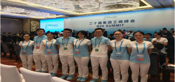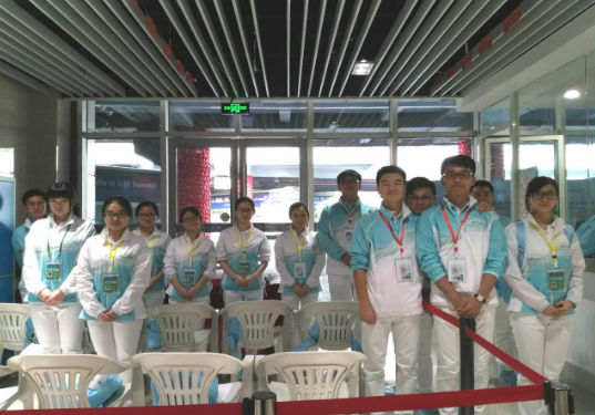 我校的岗位分为四组,境外媒体组、B20安检组、演出服务组、城市保障组。信息学院的小青荷们来到各个岗位,挥洒汗水。在上岗前,他们认真地练习英语;峰会开始后,他们严阵以待,用最饱满最积极的姿态,向来宾绽放出真诚的笑容。新闻组的同学们披星戴月,他们看过早上五点的晨光熹微和凌晨一点的满天繁星;安检组的同学们承担着为安保人员和外宾翻译的重任,他们用流利的口语向世界表现着杭州青年大学生的素养;演出组的同学们工作最为神秘,尽管最后没有看到演出,但他们像一株株小树,扎根在岗位上,甘于寂寞,保卫演出;城市保障组的同学最为辛苦,他们最先上岗,走过烈日下的树荫,走过微风中的垂柳,身姿挺拔,一致的步伐声书写峰会最动人的乐章。