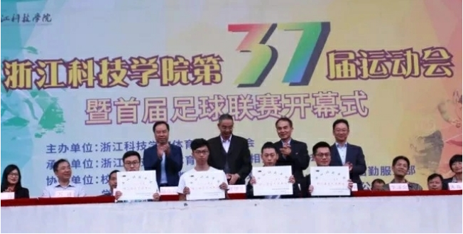 2018年4月24日下午,浙江科技学院迎来了第三十七届运动会开幕式暨第一届校足球联赛的开幕。在开幕式上,信息学院分工会及信息学院团委学生会体育部都获得了“群众体育先进单位”的荣誉。开幕式后教职工足球队与卫冕冠军信息学院足球队进行了友谊赛。在2017年度信息学院各项体育赛事成绩斐然。