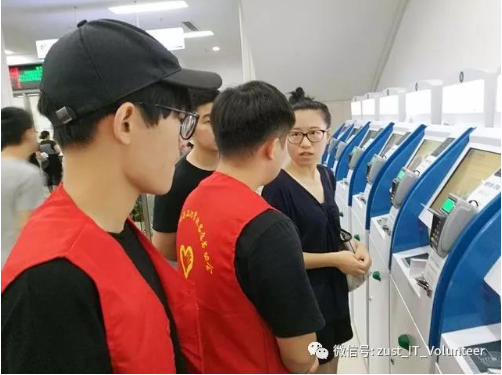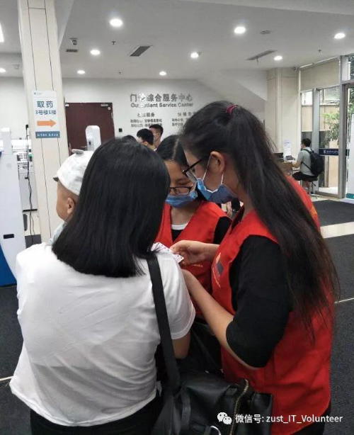 为减小挂号带来的压力,同德医院安放了许多自助挂号机来分摊人流量。但是,许多人还不会使用这个终端机,需要人指导他们使用。志愿者们还能在大厅为患者指路,提高服务效率。