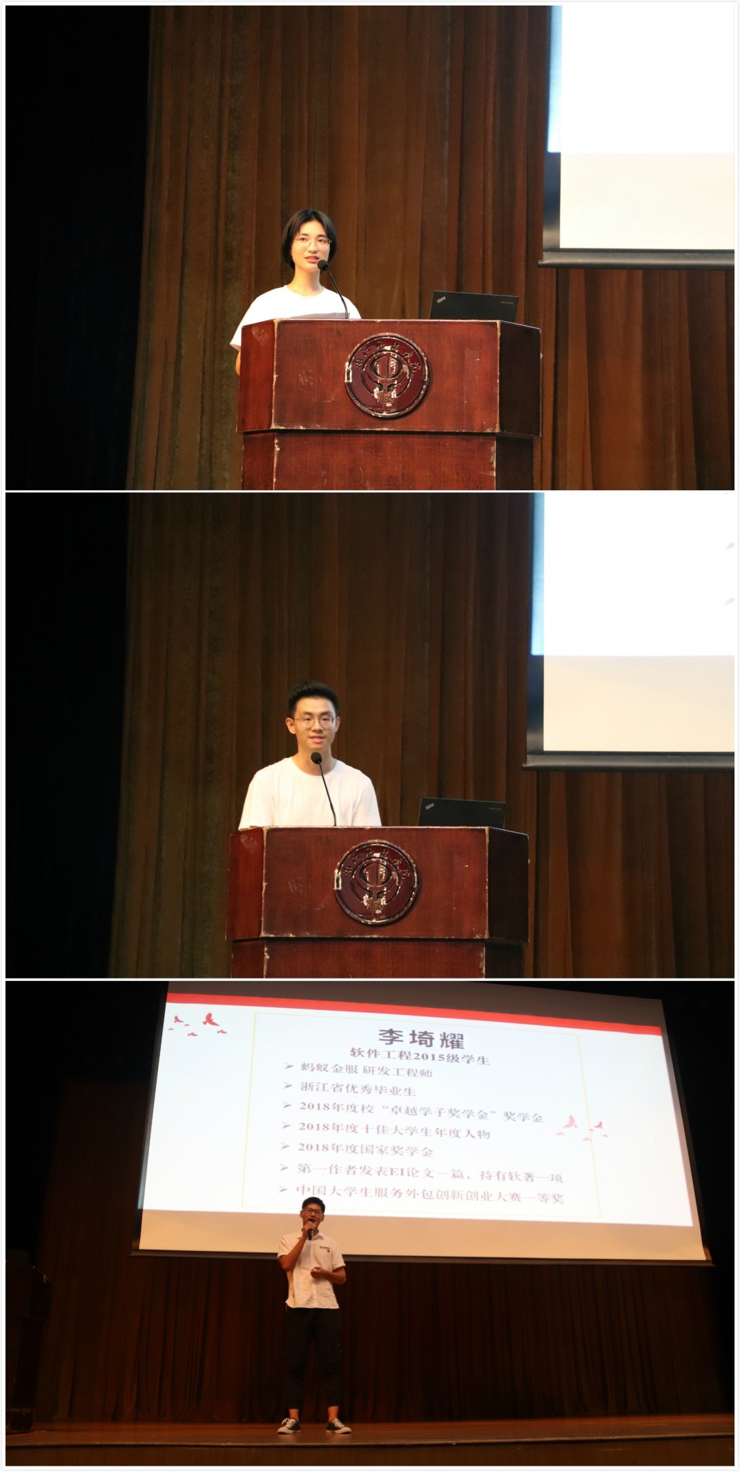 2019级电子信息类专业沈幸银、卓越学子奖学金获得者计算机162班陆凯杭以及就职于蚂蚁金服的2019届毕业生李埼耀分别作为新生代表、老生代表和校友代表发言。做爱视频