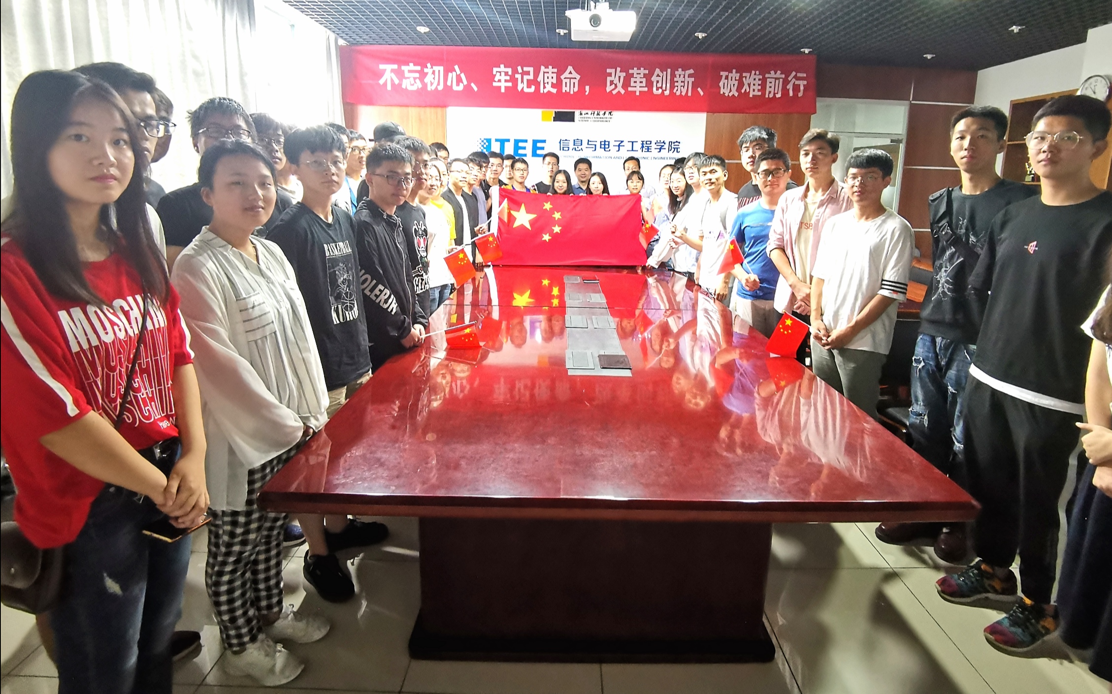 积极组织党员师生、群众和入党积极分子代表等实时收看,共同见证伟大时刻,祝福伟大祖国。