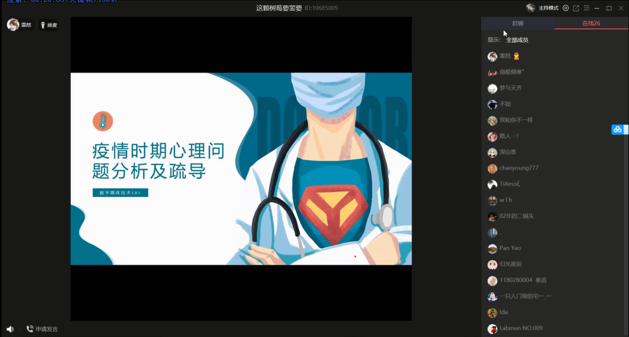 数媒181团支部、数媒体183团支部则通过线上实时交流,做好疫情下的心理防控,保证同学们的心理健康,坚定打赢疫情阻击战的信心。