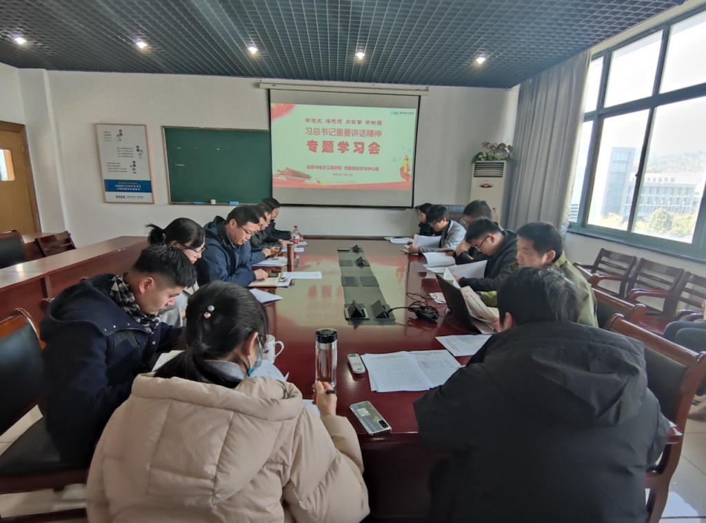 2021年3月2日信息学院党委召开习近平总书记重要讲话精神专题学习会,信息学院党委委员和各师生党支部书记参加了学习会。会议集中学习了习近平总书记的系列讲话精神:习近平在中国—中东欧国家领导人峰会上的主旨讲话;习近平在二〇二一年春节团拜会上的讲话;习近平在全国脱贫攻坚总结表彰大会上的讲话;习近平在中央党校(国家行政学院)中青年干部培训班开班式上的讲话。重点学习了习近平在党史学习教育动员大会的讲话。