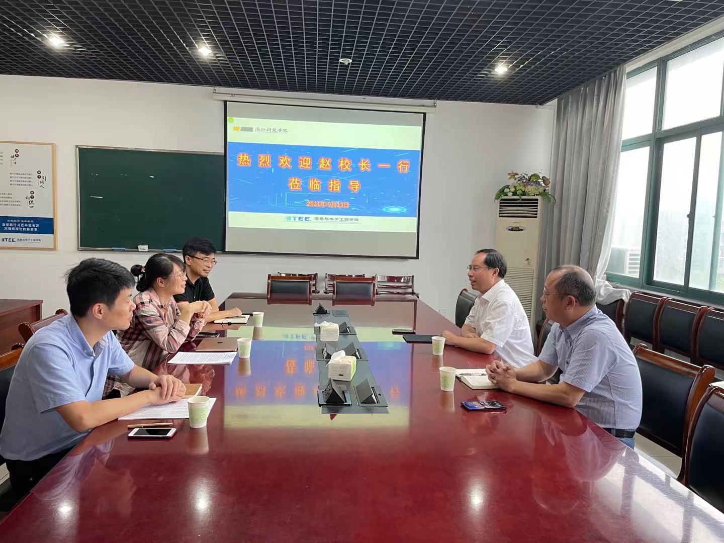 院党委书记张蕾汇报了人工智能产业学院、信息技术产业研究院建设、学院和“虹软”等头部企业合作等学院重点工作。听取汇报后,赵东福对学院今年以来各项工作及取得的成绩表示肯定,并指出,下一步学院发展要找到志同道合的合作伙伴,建立共同的奋斗目标,做特、做专、做精产业研究院。