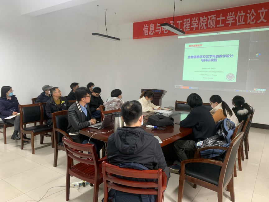 2021年12月14日,信息学院邀请南开大学刘健教授做《生物信息学交叉学科的教学设计与科研实践》专题报告,我校信息学院与生化学院相关教师及部分学生代表参加了交流研讨。