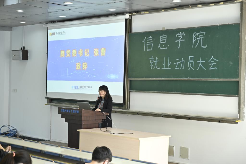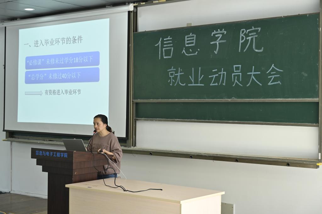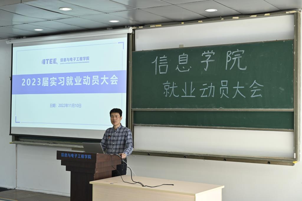 2023届毕业生认清现在就业形势,把握实习就业机会,11月10日,信息与电子工程学院2023届毕业生实习就业动员大会在C1-A106顺利举行!院党委书记张蕾、院党委副书记施建腾、教务办吴洁雯、就业辅导员等出席大会,2023届毕业生参加。