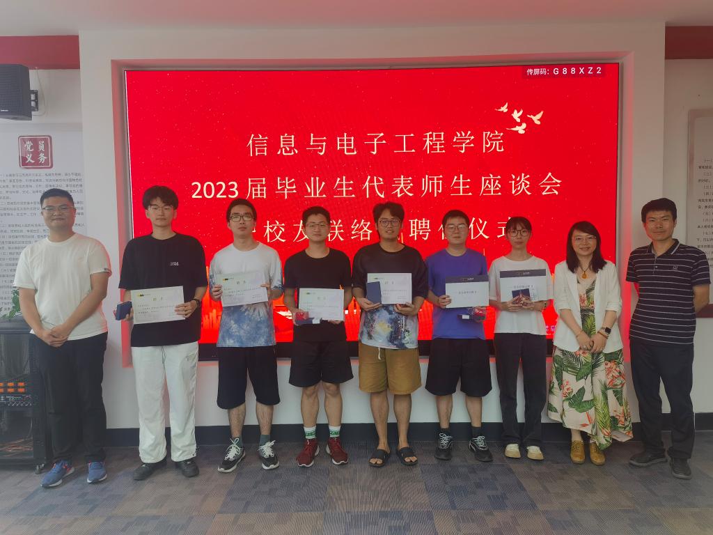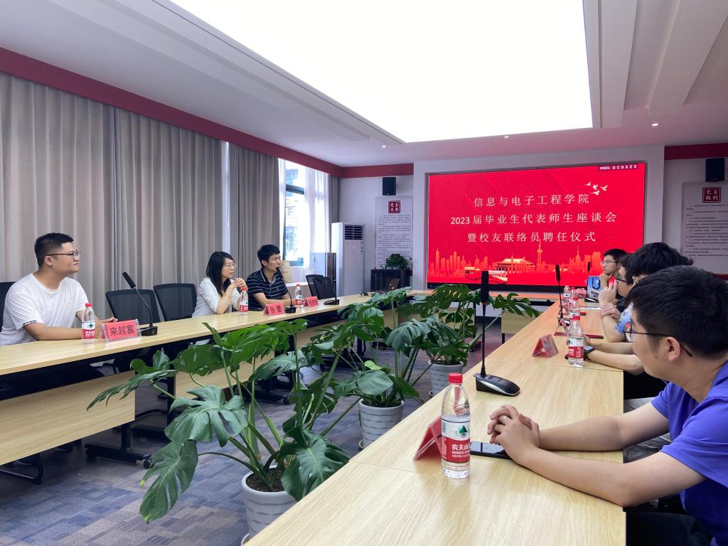2023年6月16日上午,信息学院召开2023届毕业生代表师生座谈会暨校友联络员聘任仪式。学院党政领导成员,毕业班辅导员及2023届毕业生联络员代表参加本次座谈会。