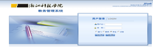 //jwxt.zasp1.org/,出现登陆界面(如下图)。选择学生(默认),用户名称为:学生学号,用户口令为自己设定的密码,(如有遗忘请到所在学院教务员处查询),登陆系统。校外访问须先认证。